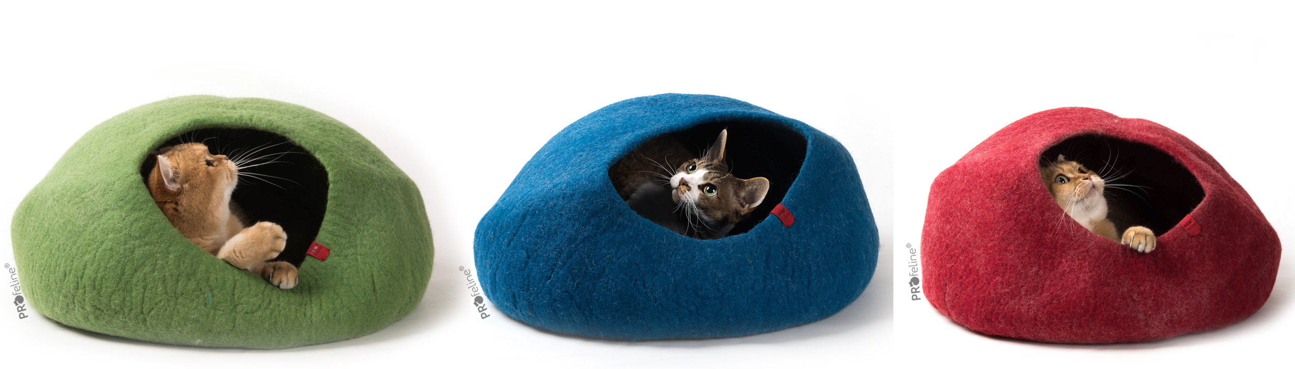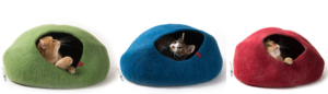 Moderne Katzen Filzhoehlen in Grün, Rot und Blau